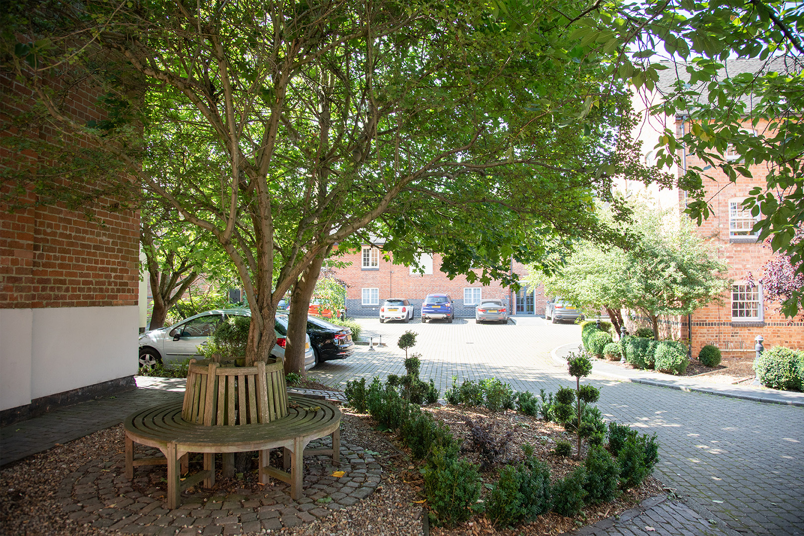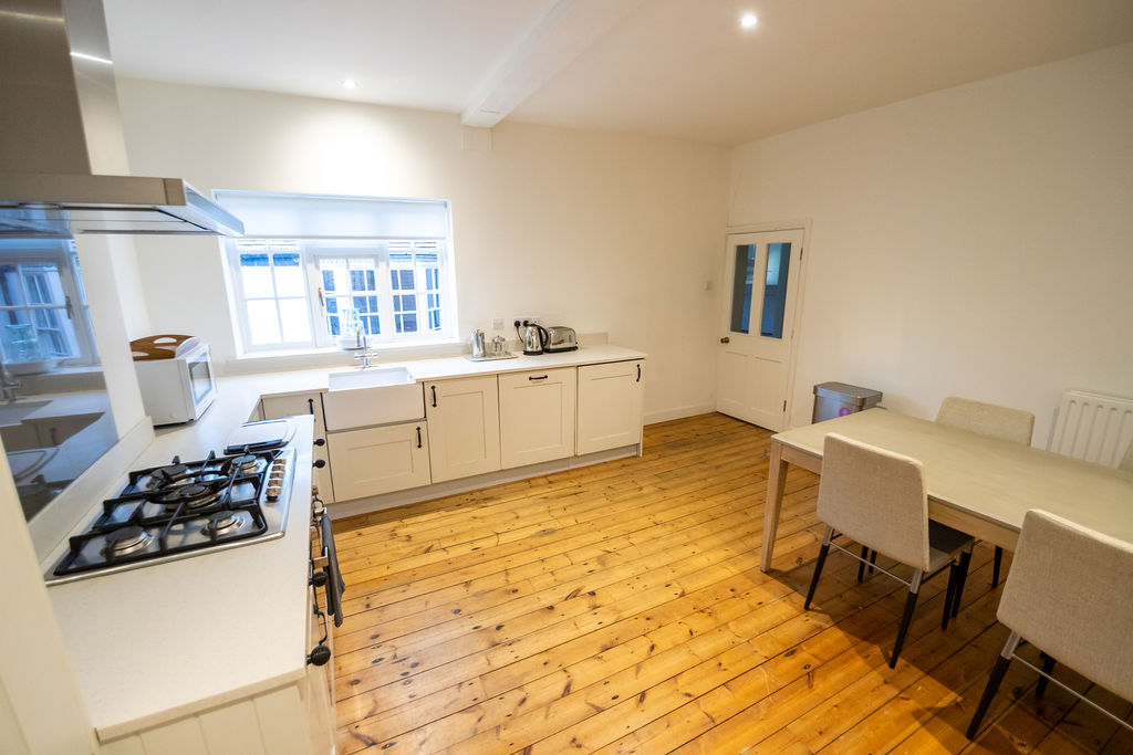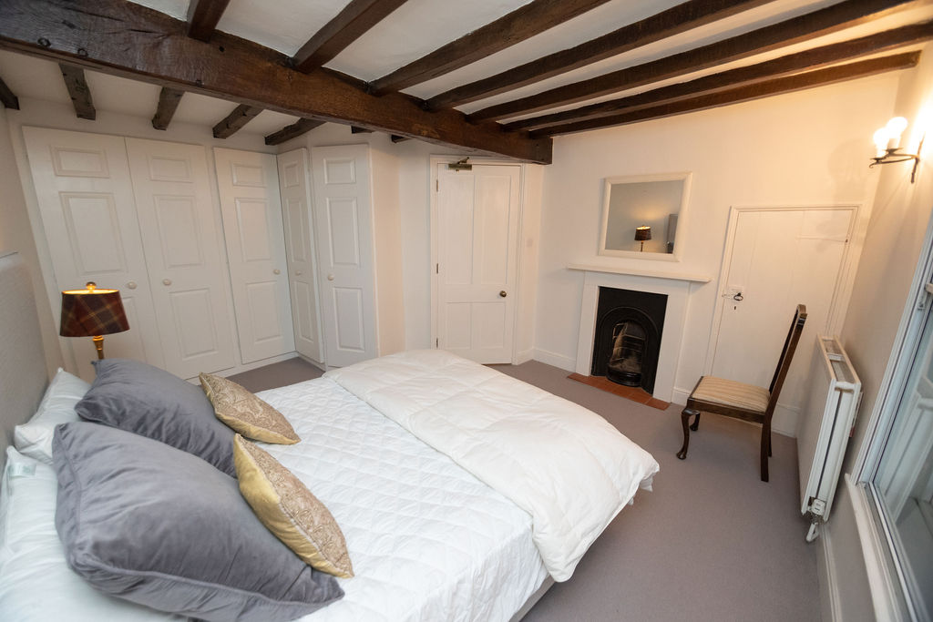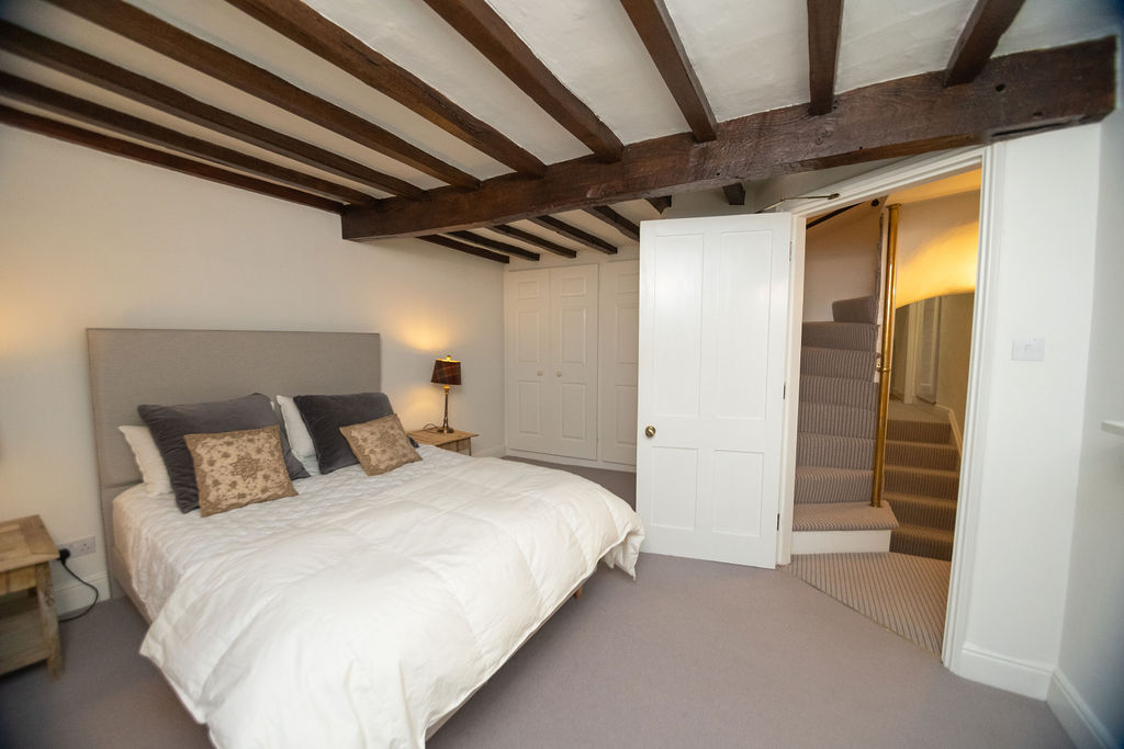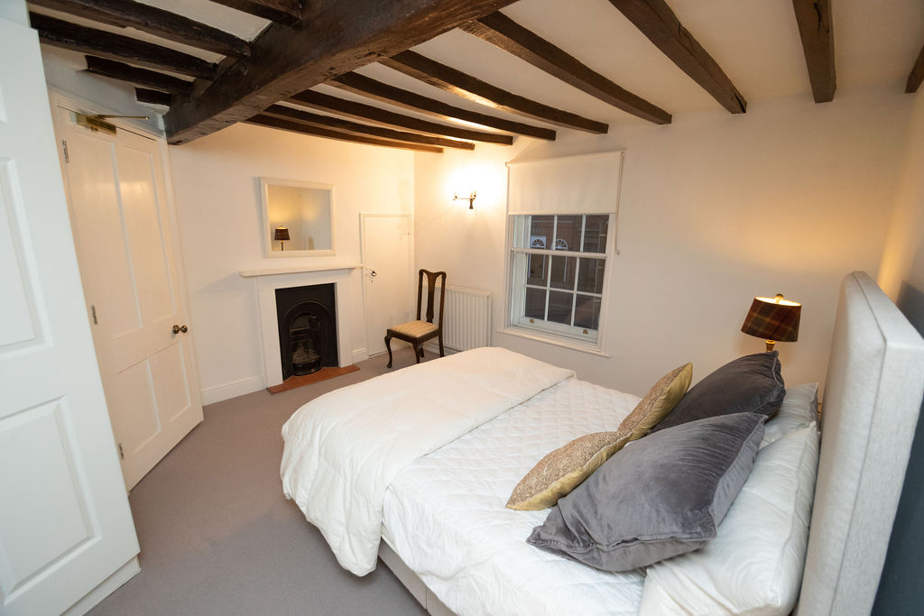 First floor private and spacious apartment, with Jacobean oak beams, this two bedroom, two bathroom open plan kitchen /living room has lovely views of the courtyard and is perfect for families, executives or couples sharing. Stylishly furnished. Shared outside space. Parking on site.