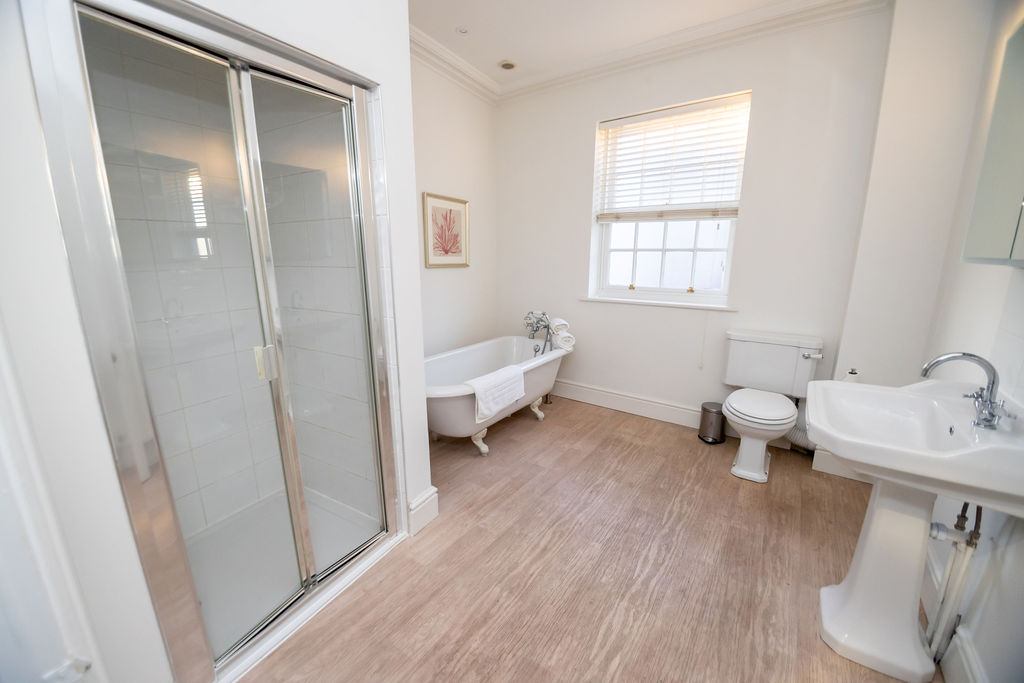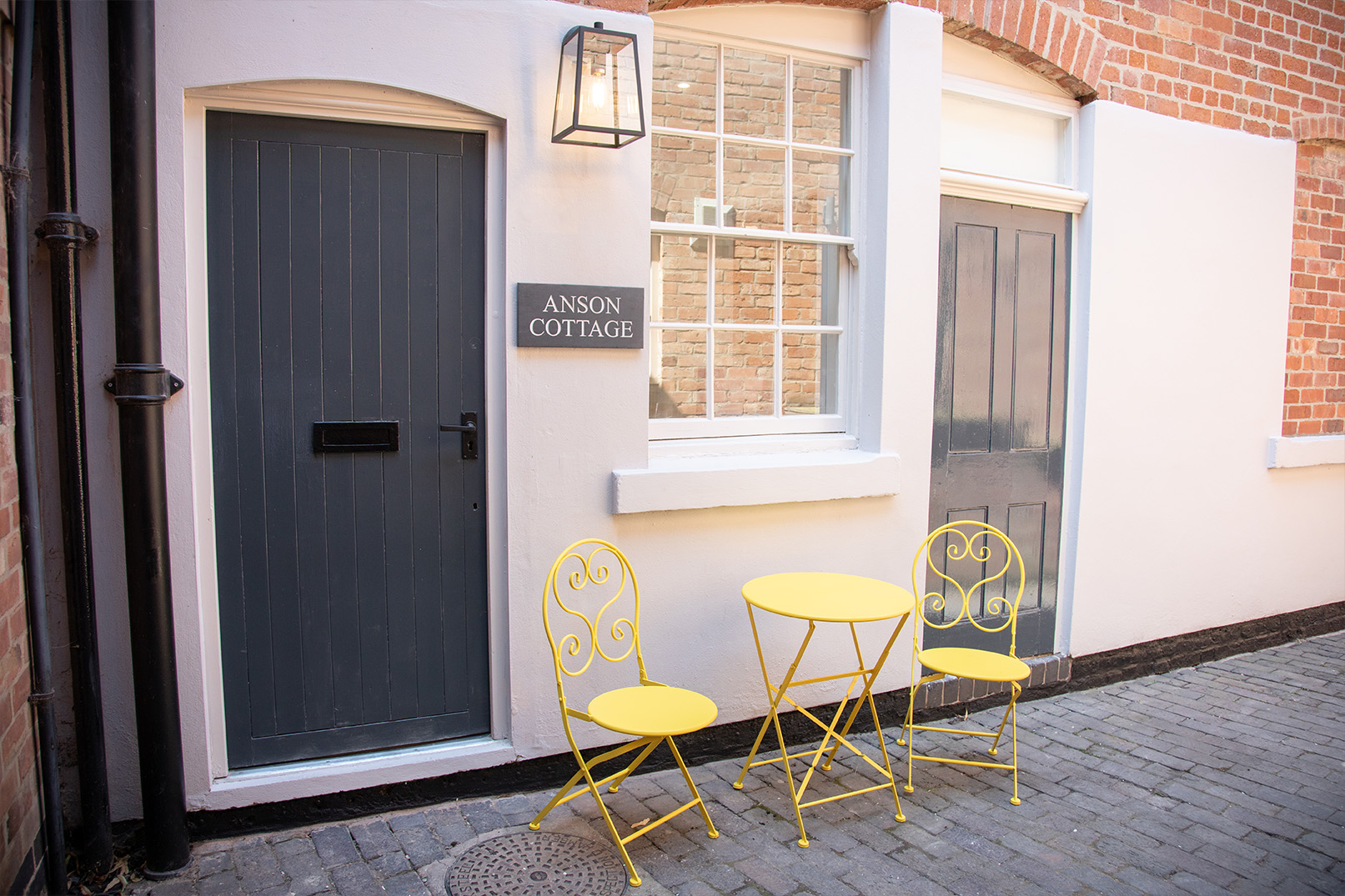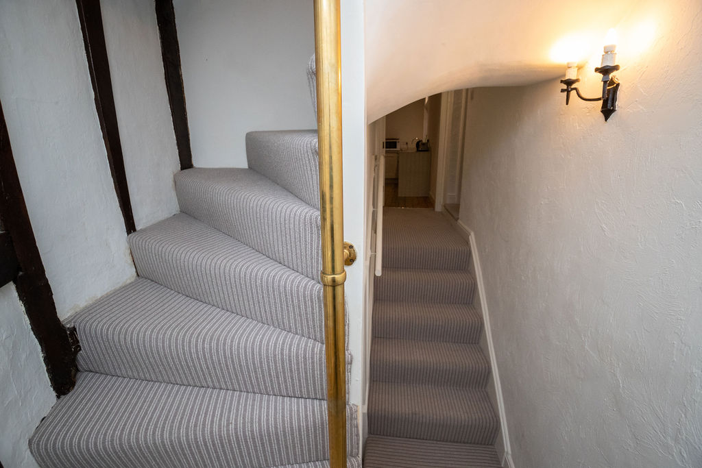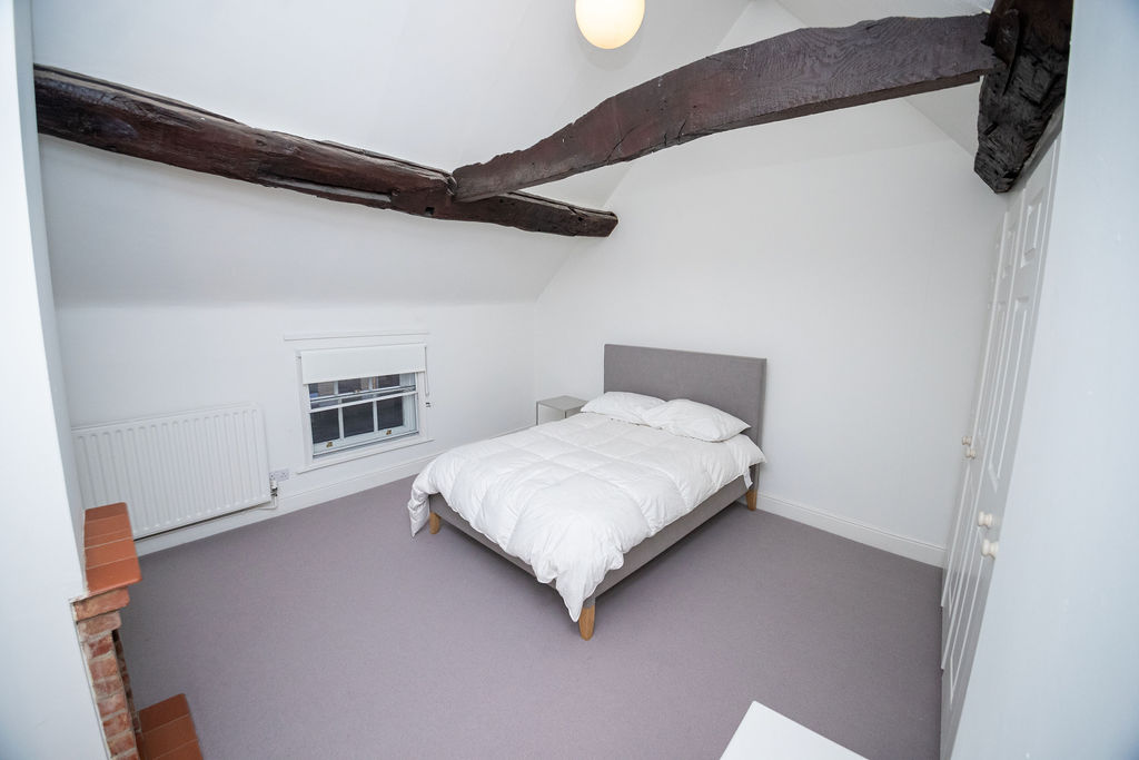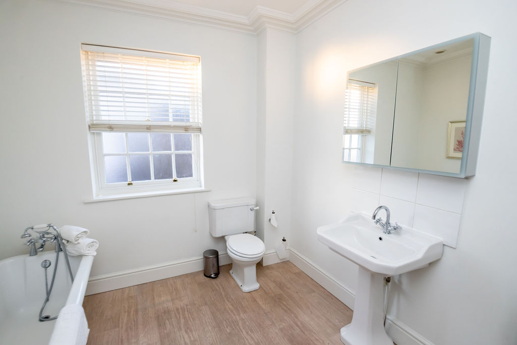 First floor private and spacious apartment, with Jacobean oak beams, this two bedroom, two bathroom open plan kitchen /living room has lovely views of the courtyard and is perfect for families, executives or couples sharing. Stylishly furnished. Shared outside space. Parking on site.