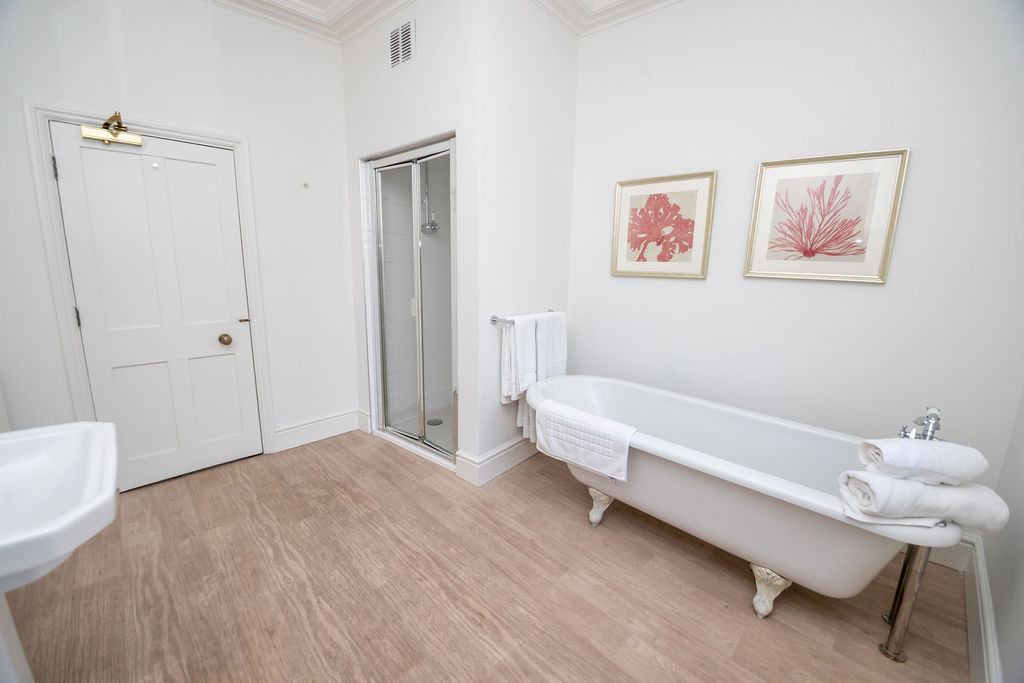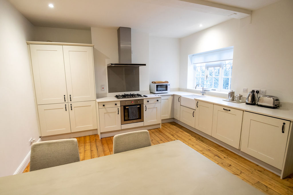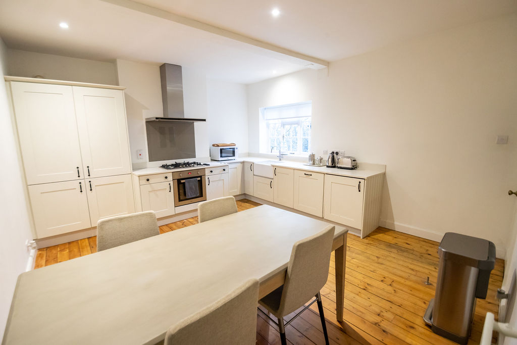 Our latest, newly converted 2 bedroom, 2 bathroom en suite self contained character cottage, high ceilings, bespoke kitchen with Quooker hot tap, feature fireplace with Aga electric “wood burner” and furnished with pillow top heavenly beds and New England style blinds. Shared outside space. Parking on site.