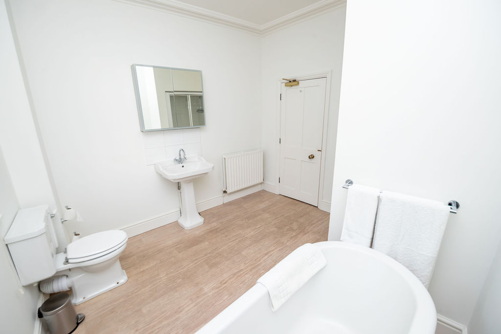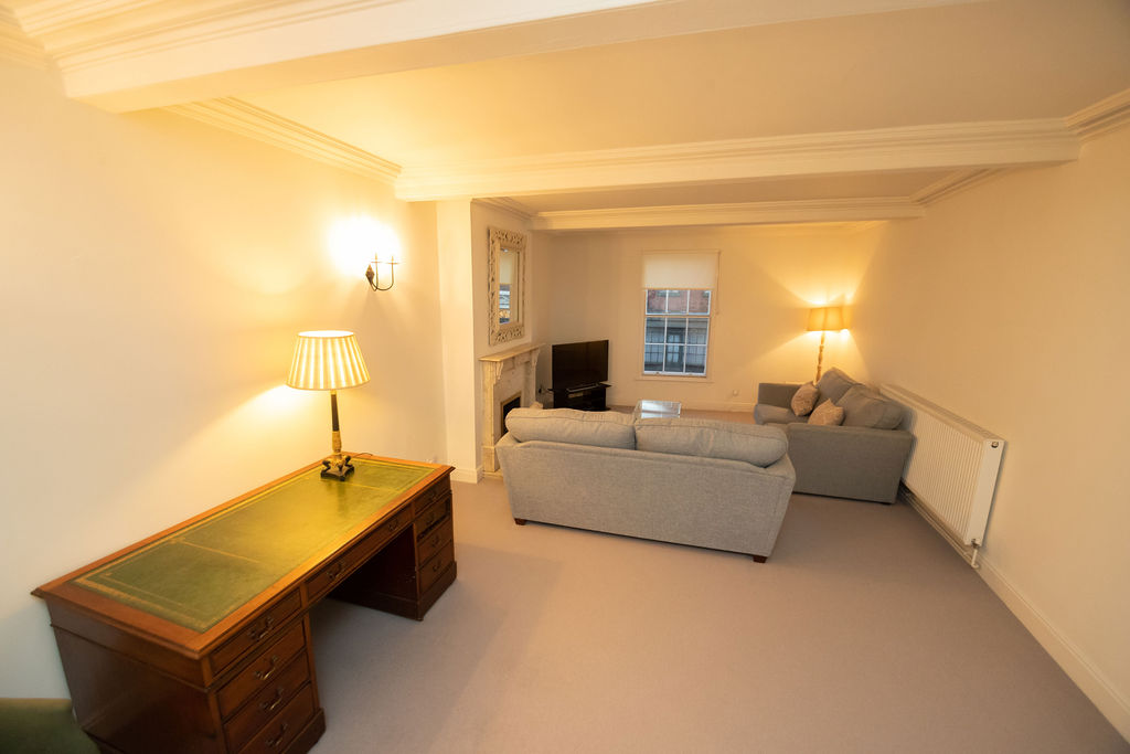Fully upgraded in 2020 with new carpets and decoration throughout. Private entrance off courtyard. Traditional style Georgian apartment on two floors. Large living room with fireplace and dual aspect. Separate large kitchen fully fitted with shaker style kitchen cabinets. Two bedrooms, one family bathroom with separate roll top bath and shower.